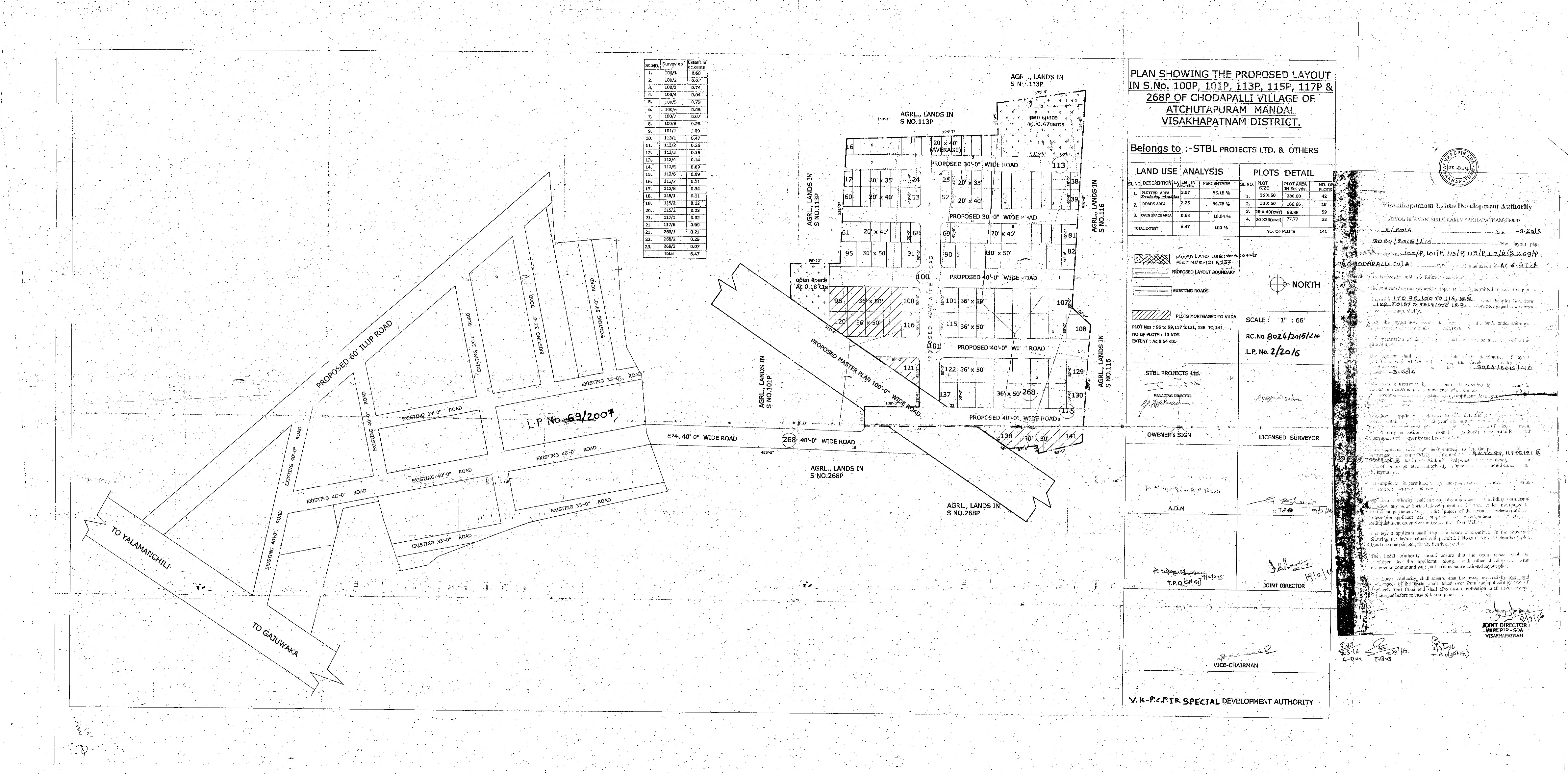 | 48 | 8024/2015/L10 | 2/2016 | | VK-PCPIR SDA, Visakhapatnam - Approval of Layout for an extent of AC.6.47 Cts in Sy.Nos.100/p, 101/p, 113/p, 115/p, 117/p, and 268/p of Chodapalli Village, Atchutapuram Mandal, Visakhapatnam District vide L.P.No.2/2016 in favour of MIs. STBL Projects Limited., Visakhapatnam - Orders - Issued | Chodapalli Village, Atchutapuram Mandal, Visakhapatnam District | | 6.47 | 100/p, 101/p, 113/p, 115/p, 117/p, and 268/p | 02/03/2016 | PRVT | VIEW | VIEW |